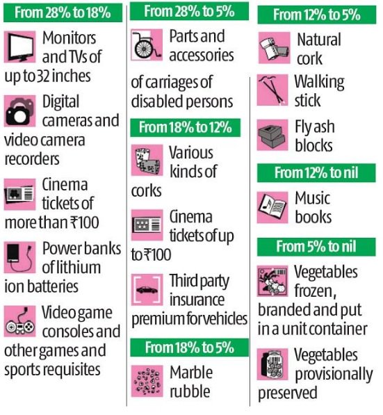 Its a Christmas gift for the middle class from the Government as GST Council cuts rates on 23 items, including TVs, digital cameras, movie tickets; no relief on cement, automobile parts.